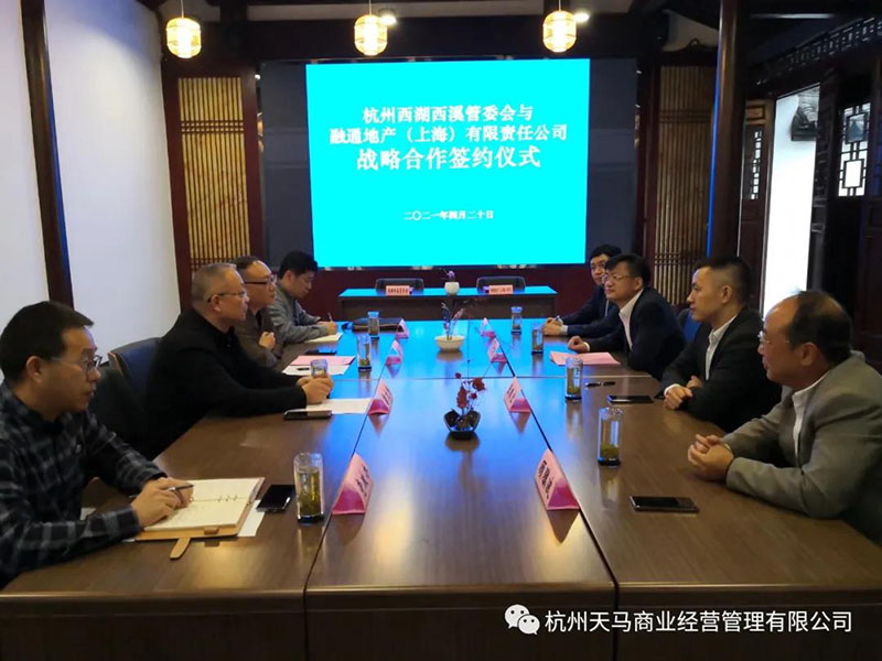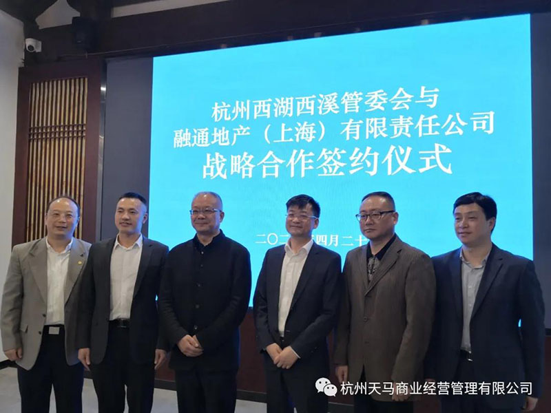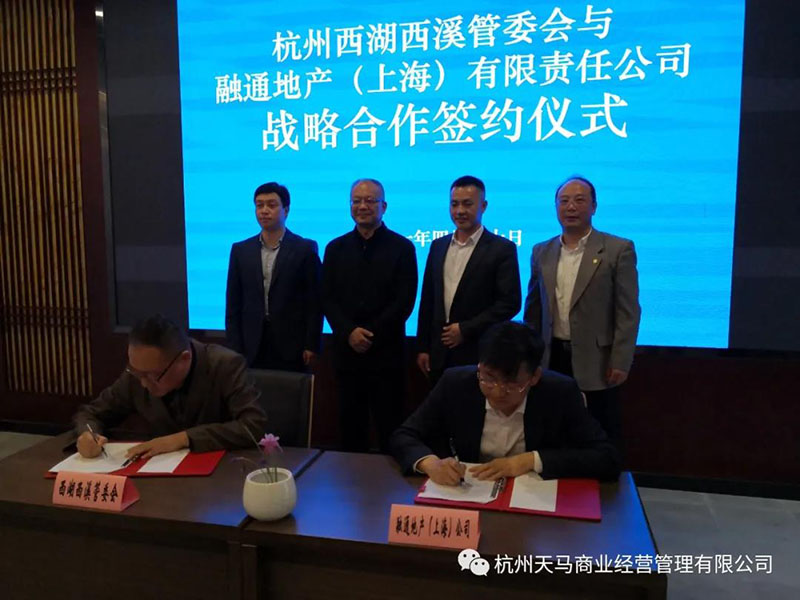 4月20日,在杭州天马商业经营管理有限公司的多方努力下,杭州西湖西溪管委会与融通地产(上海)有限责任公司如期在美丽的西字湖畔签订战略合作协议。天马商业公司董事长顾骥波先生应邀参加签字仪式。
